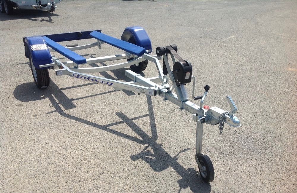 Sun Way G500J 1-Sitzer-Jetski-Anhänger, straßenzugelassen. Zulässiges Gesamtgewicht 650 kg, Nutzlast 500 kg, verzinktes Fahrgestell, ungebremste Achse mit Ölbadnabe. Ideal zum einfachen Zuwasserlassen von Jetskis oder kleinen Booten.