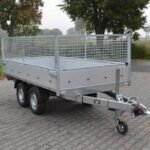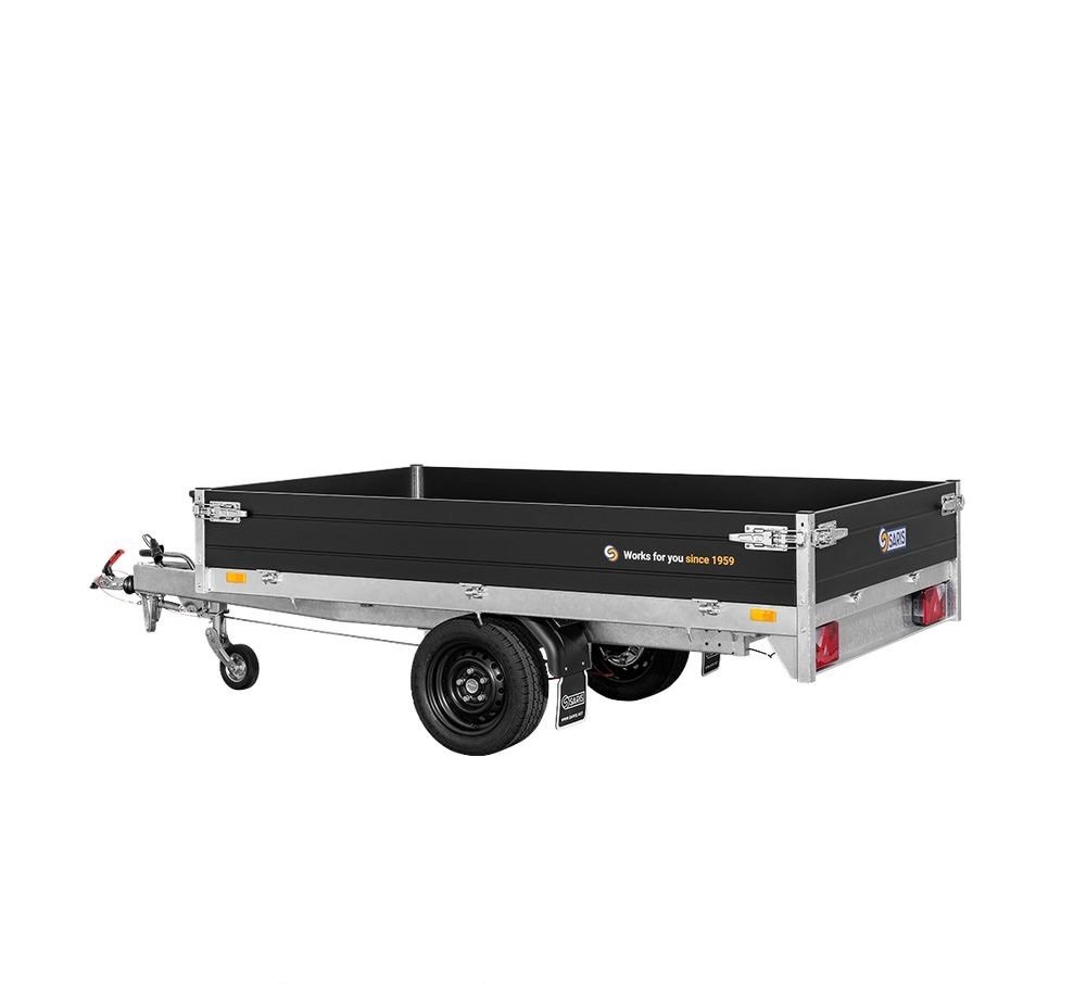 Remorque Benne SARIS – K1276 – 276×150 cm – PTAC : 1500 kg – 1 Essieu – Freinée. Très appréciée des professionnels du bâtiment et des aménagements extérieurs.