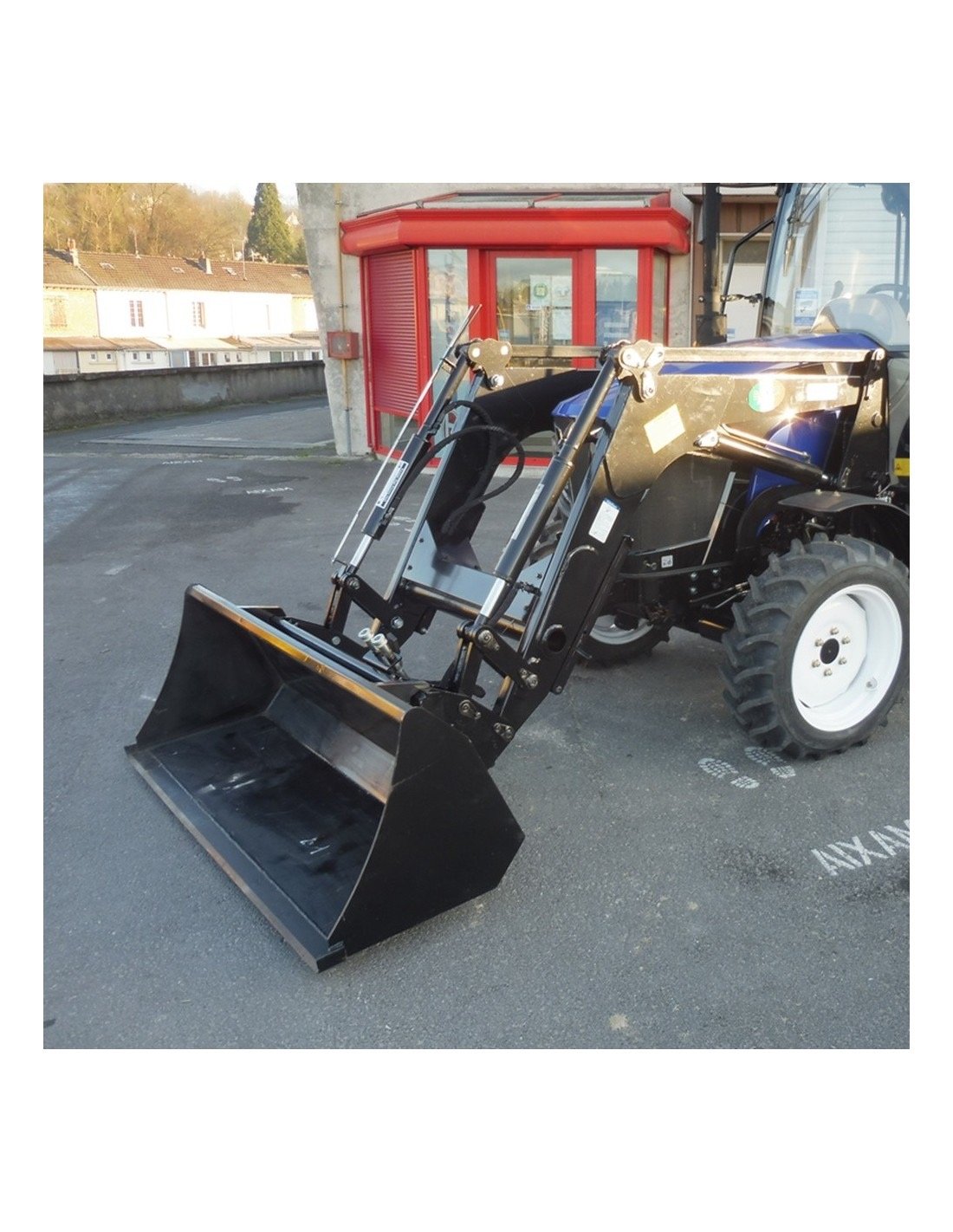 Le chargeur frontal est fourni avec godet à terre et un bâti avec pique botte ainsi que la troisième fonction de série.