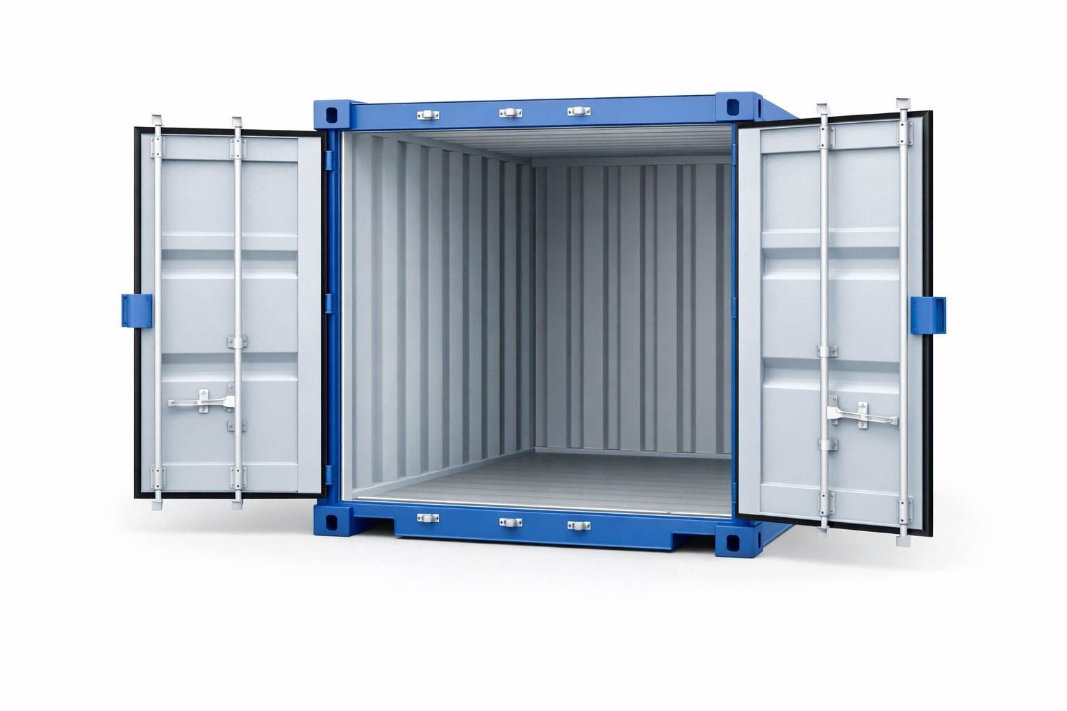 Le container est équipé de portes à double battant, positionnées sur la largeur, facilitant l’accès et le chargement.