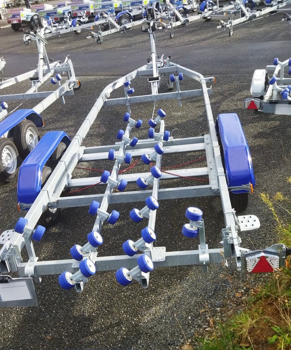Le porte-bateau multi-rouleaux GALAXY -GD18 / G2702 est conçu pour le transport routier de bateaux jusqu’à une longueur de coque de 6,95 mètres et un poids maximal de 3500 kg. Grâce à sa conception robuste et à ses équipements de qualité, il assure un transport sécurisé pour divers types de coques, qu’il s’agisse de bateaux à coque en V, semi-rigides, dériveurs intégraux ou coques rapides.