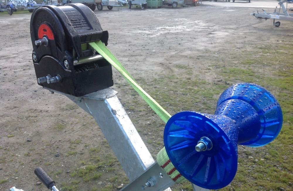 Équipée d’un treuil auto-freiné à sangle, la remorque facilite le halage du bateau en toute sécurité. Le support de treuil réglable et la butée d’étrave fixe permettent d’ajuster précisément la position du bateau.
