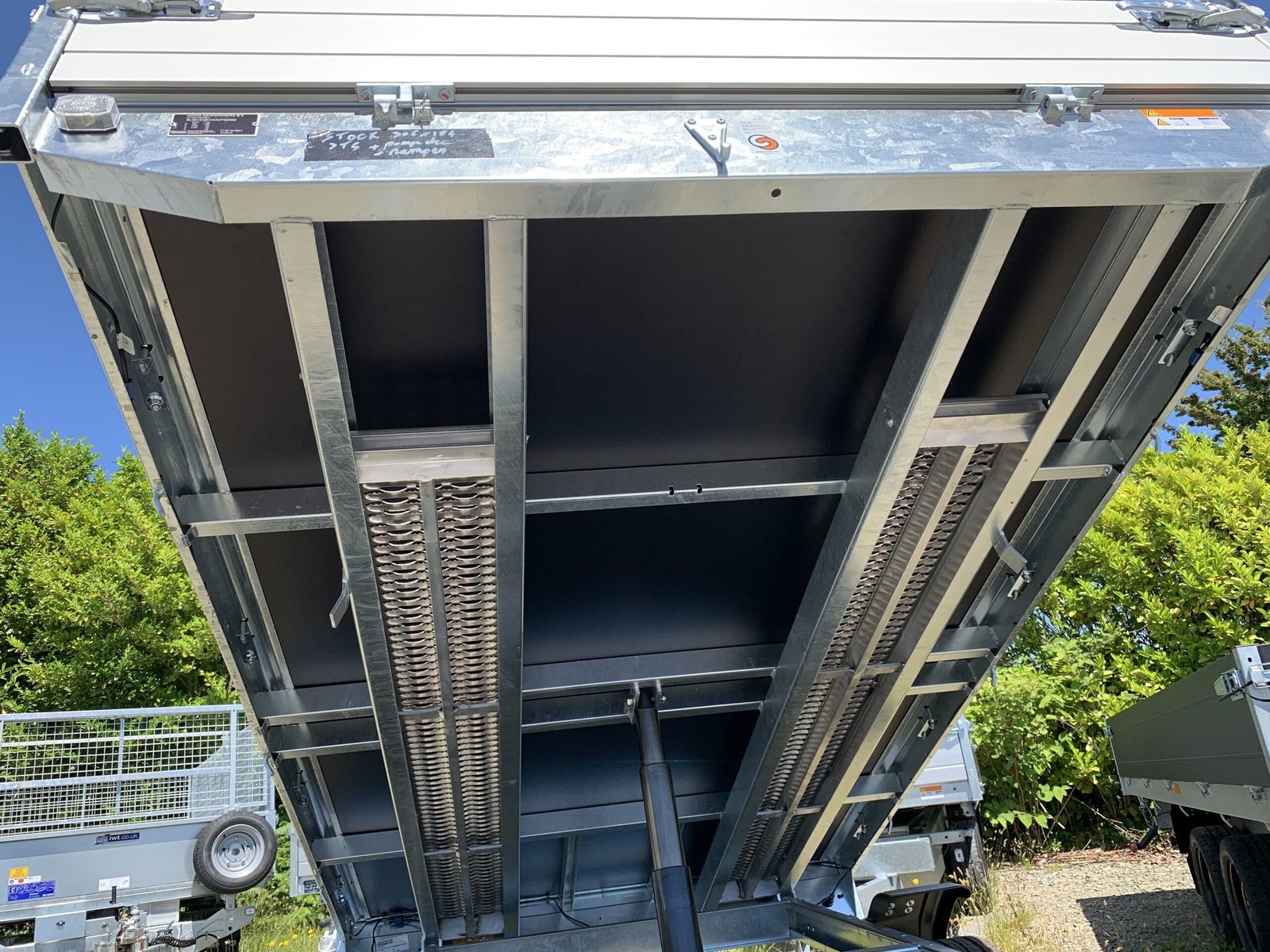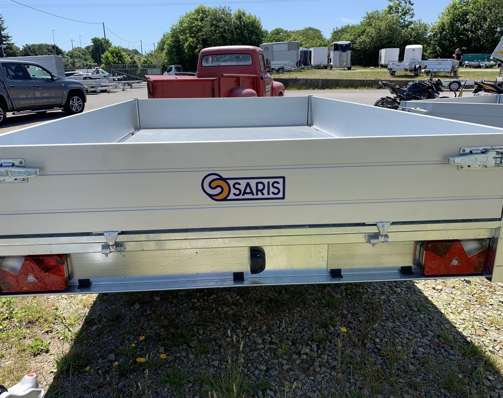 Remorque Benne SARIS – K1306 – 306 x 184 cm – PTAC : 3500 kg – 2 Essieux – Freinée – Pompe électrique Très appréciée des professionnels du bâtiment et des aménagements extérieurs.