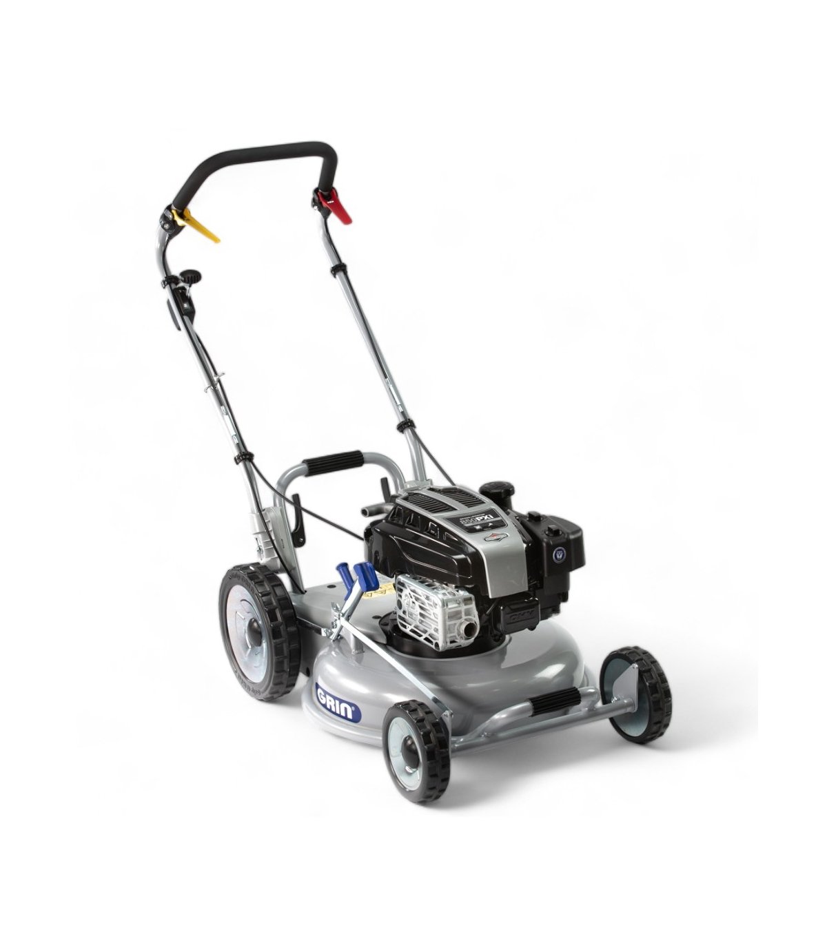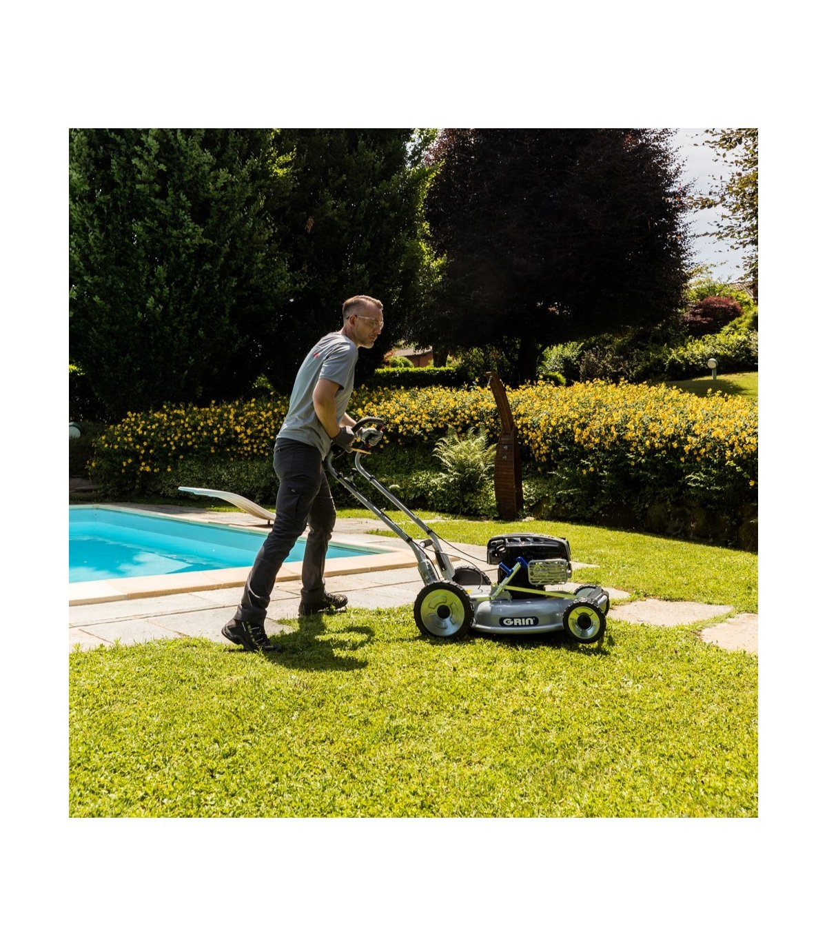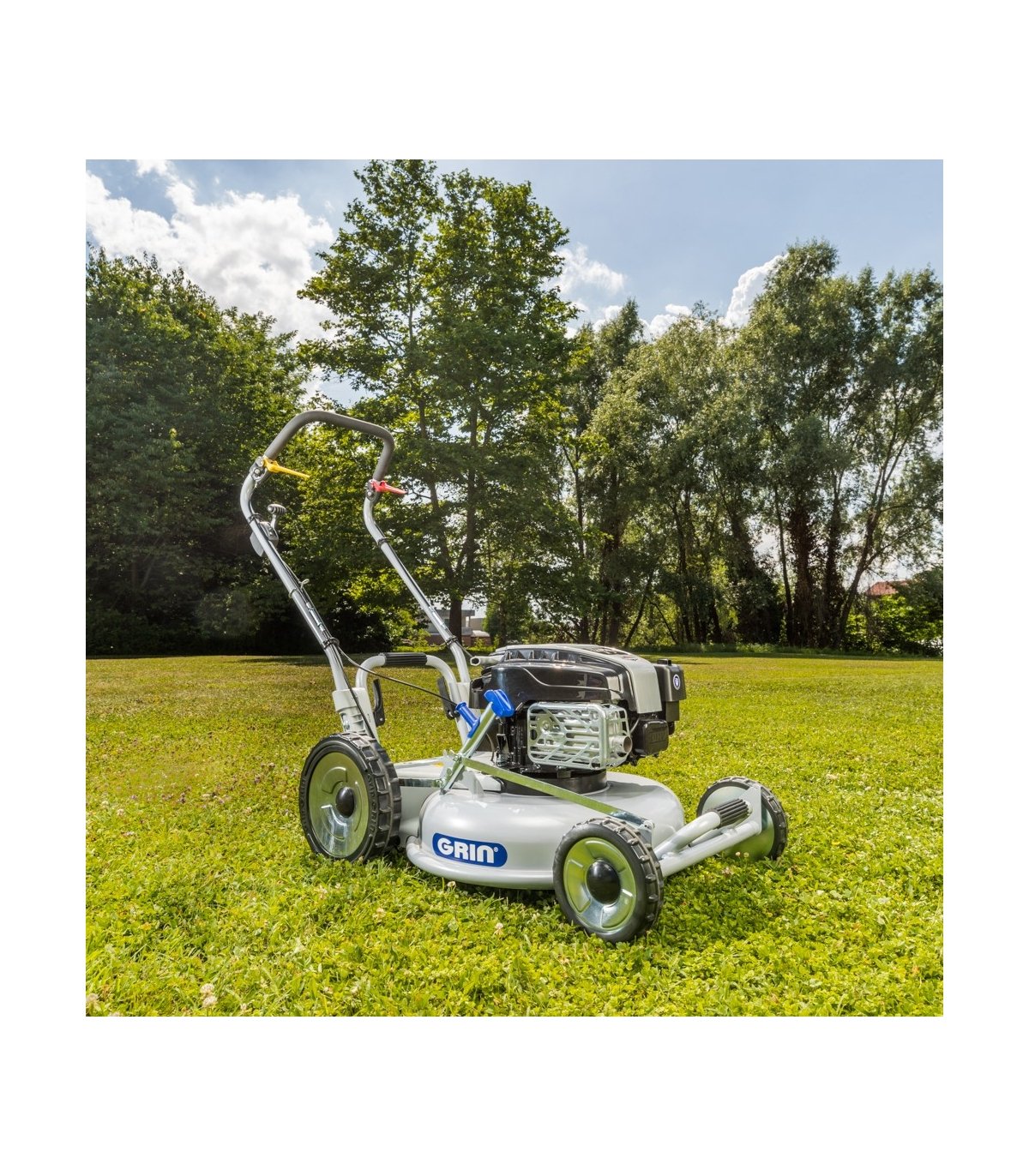 - Tondeuse à gazon conçue pour les paysagistes GRIN PM53A, équipée du moteur 4 temps Briggs & Stratton professional de 190 cm3, prévue pour l’entretien des jardins jusqu’à 3000m2.