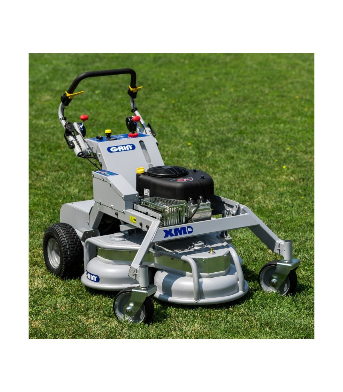 • Tondeuse professionnelle GRIN XM90A, spécialement conçue pour l’entretien des grands espaces verts de 3000 m² et plus, avec une capacité de tonte de 5.200 m²/h et une largeur de coupe de 90 cm.